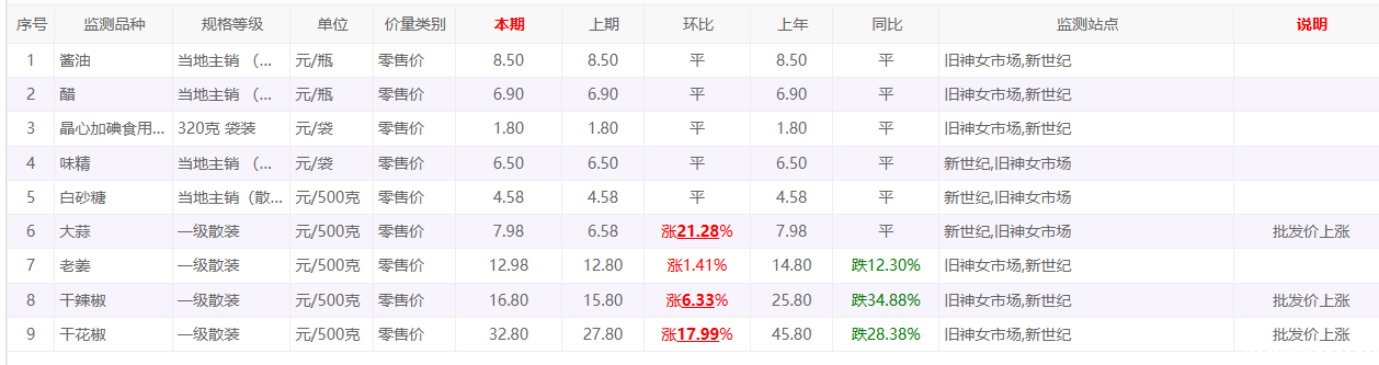 调味品、居民日用工业消费品零售及农业生产资料零售价格监测一览表10月25日