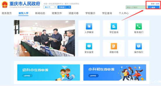 家长在电脑端打开重庆市政府网站:https://jcjy.cqedu.cn/zsxtwt/