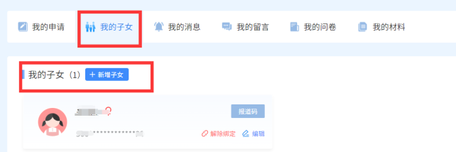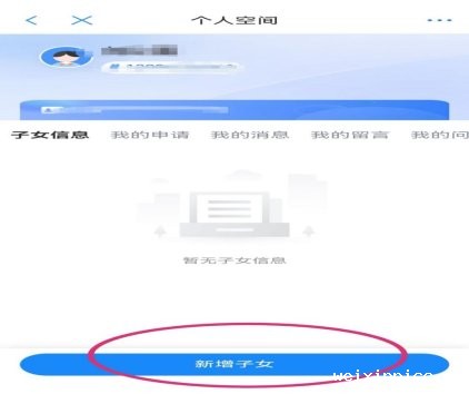 1.点击“个人中心”——我的子女——新增子女。根据网上提示进行填写。如下图:
