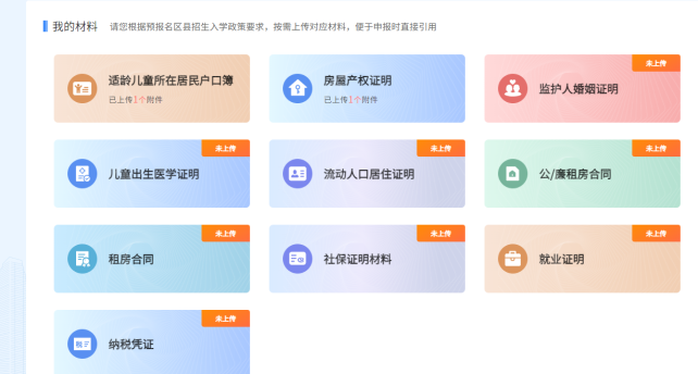(2)点击“立即前往”,出现如下页面。家长根据需要用到的内容上传相关原件照片到网上(复印件拍照上传不认可)。