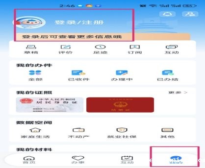 1.家长如果没有账号,请点击右下角“我的”——左上角“登录/注册”,按提示注册自己的专属账号。新账号会要求实名认证等,按提示认证即可(详情见《“渝快办”用户指引手册》)。注意:目前渝快办支持一个身份证只能用一个电话号码注册。
