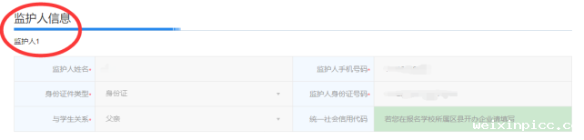 (2)监护人信息(监护人1)